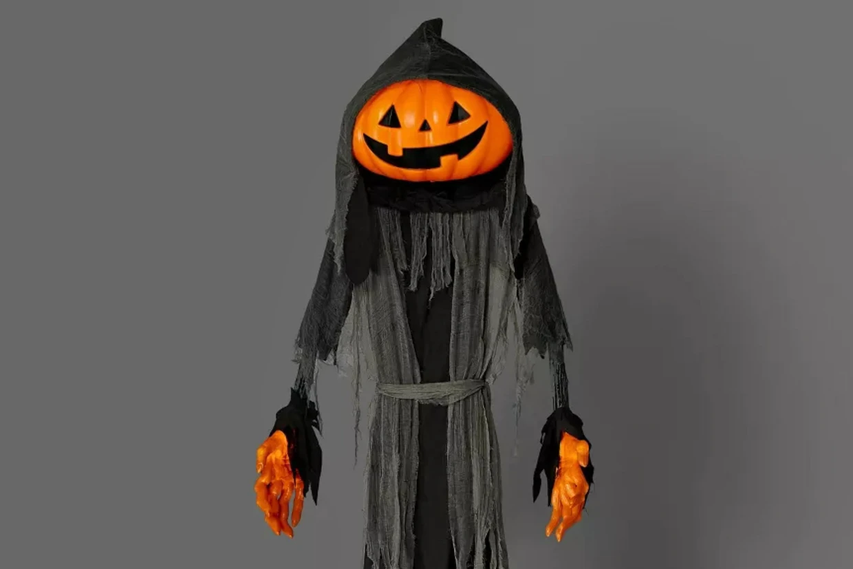 Position your spine-chilling creation wherever you desire, and then place the Jack O' Lantern on the rack's 'hat holder'. Once the head piece is set, pull the hood over the pumpkin, adding an extra layer of creepiness.