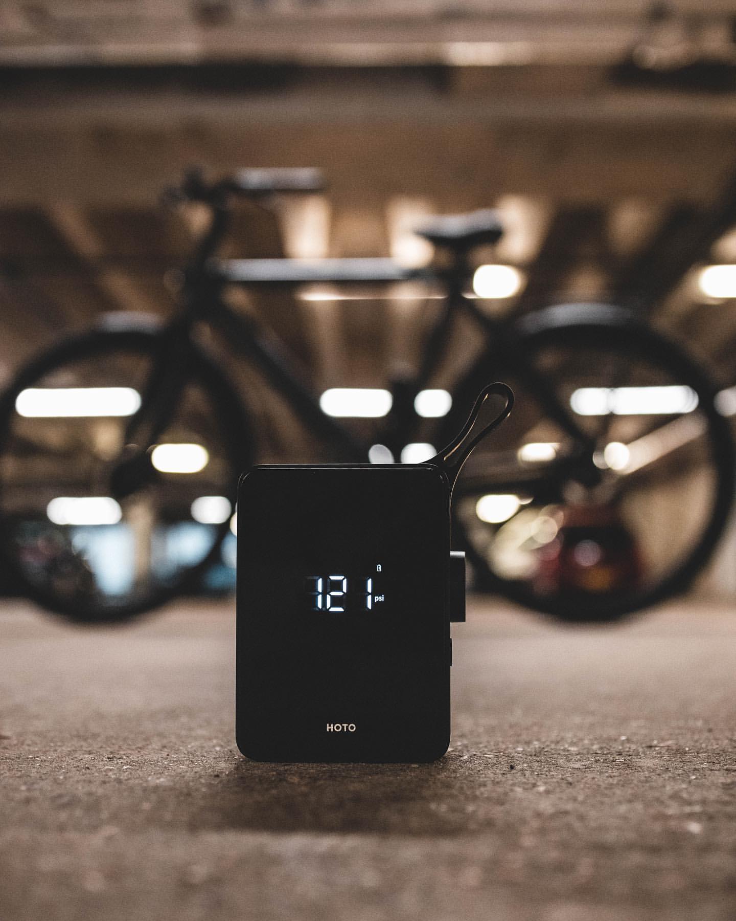 The HOTO Air Pump is designed to simplify and automate pumping for you. To use it, simply set your desired tire pressure, attach the pump to your tire's valve, press the button, and it will automatically pump your tire to the desired air pressure within minutes. It's that simple.