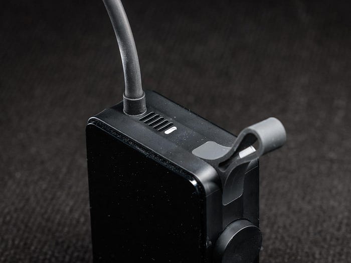 There’s not much more to add to the introduction of our review. The pump looks stylish, thanks to its TPU outer shell, it can withstand rough environmental conditions, and it operates intuitively. The modes can be changed and the target pressure can be set in increments of 0.1 bar using a rotary knob. The compressor automatically stops pumping when the desired air pressure is reached with an accuracy of 0.1 bar. The compressor works relatively powerfully but not overly loud. The internal ventilation system (a vertical bypass air channel design) speeds up heat dissipation and ensures efficient performance. However, depending on the volume of the tire, pumping can take some time, but this time can be used for other purposes with peace of mind. We found the built-in LED light practical in case the compressor needs to be used in a dark place.