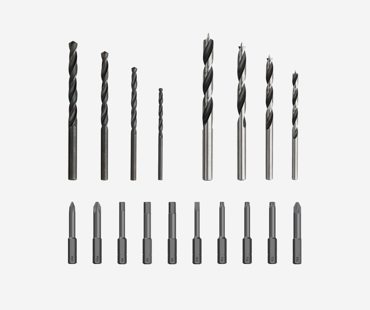 - Comprehensive Drill Set: 4 metalworking drills, 4 woodworking drills, and 10 S2-steel screwdriver bits.