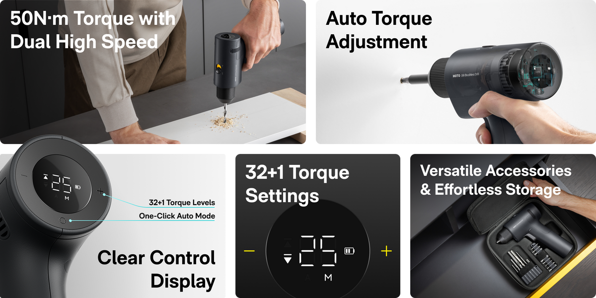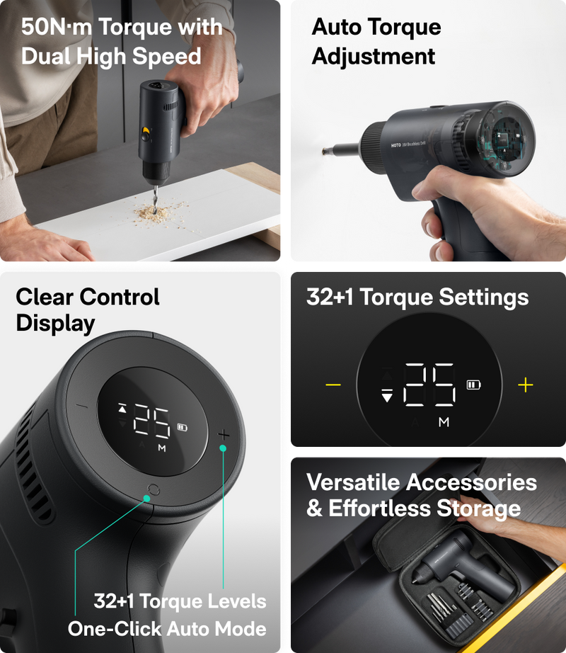 - Big Power for Modern Home: 50 N · m Torque, Dual High Speed(400 / 1700 RPM), 32+1 Torque Settings.