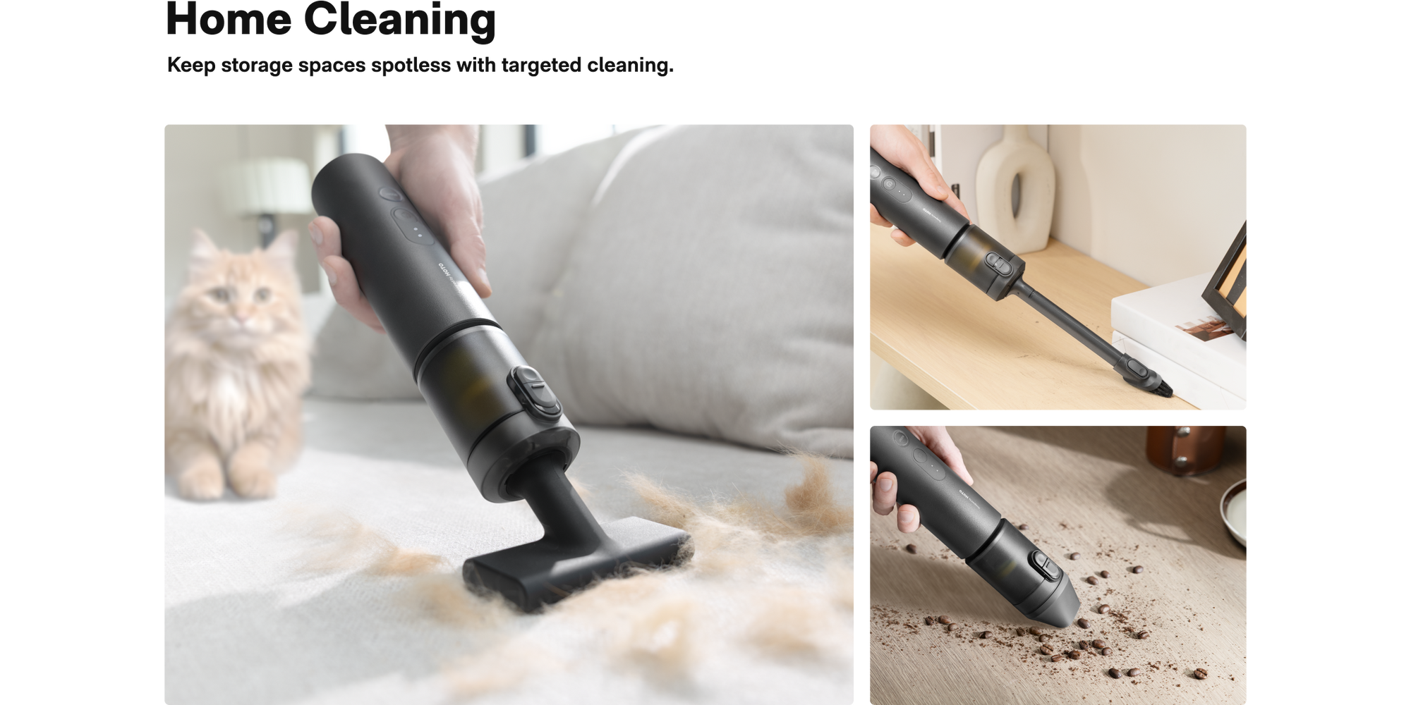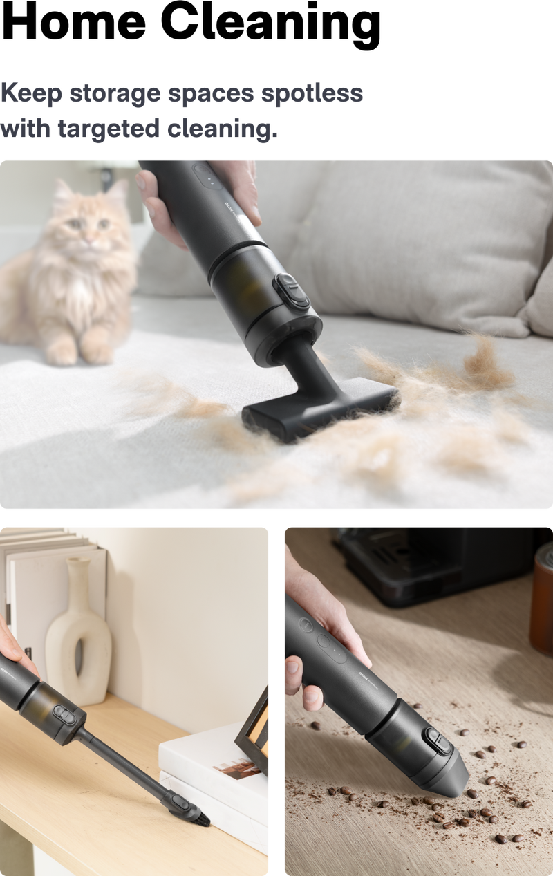 - Powerful and Efficient: Up to 20,000 Pa suction and 50 m/s airflow with three modes: Boost, Standard, and Eco.