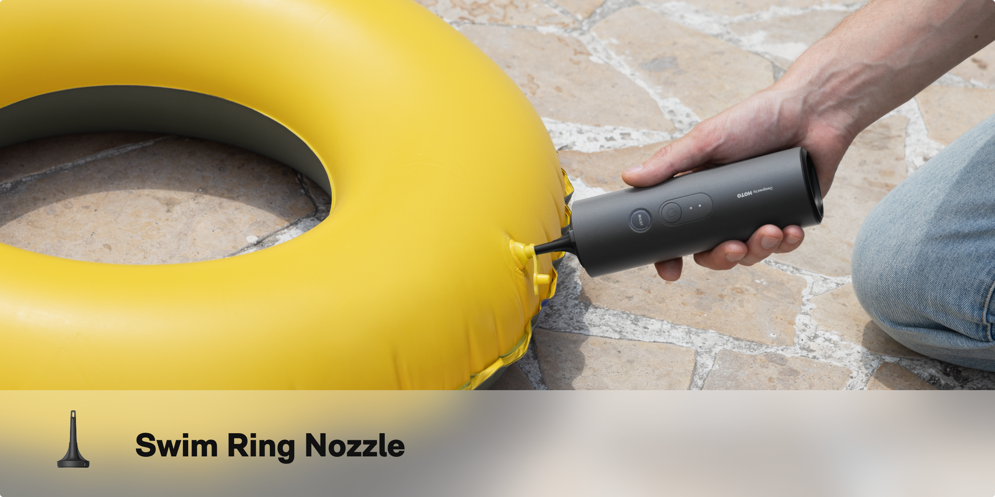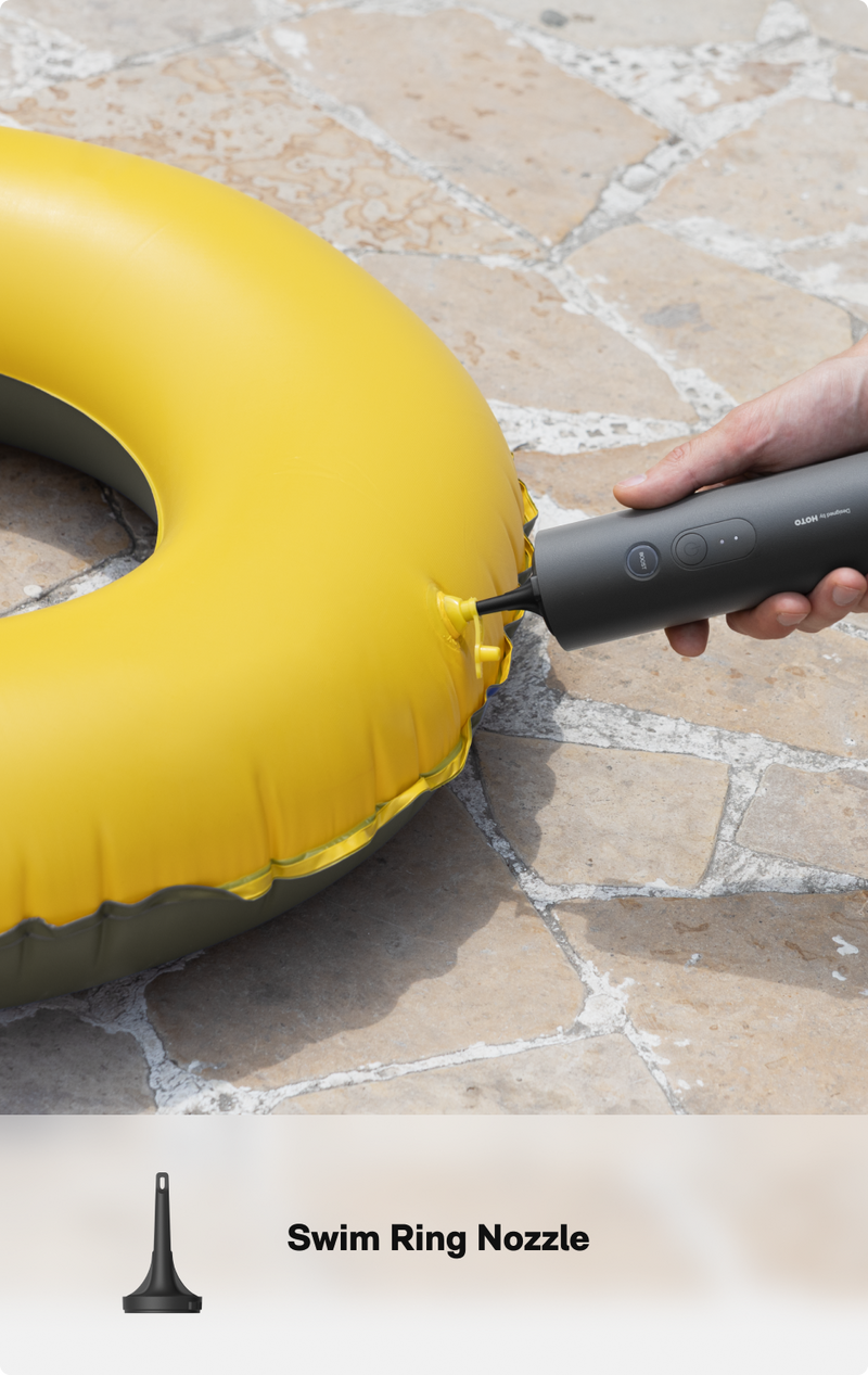 - Please don't attach the swim ring nozzle to the air inlet port. Improper installation may result in mechanical obstruction and operational failure.