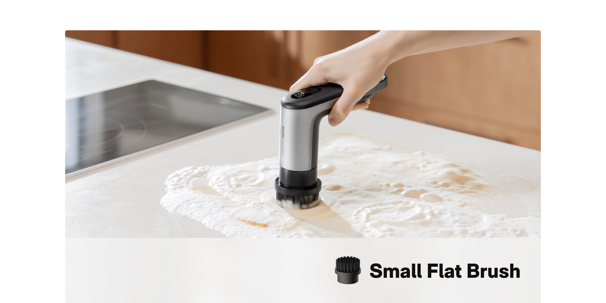 - We're currently offering both the previous and updated versions of the electric scrubber. You might notice slight differences in the Small Flat Brush and Sisal Brush (like straight vs. flared heads) and the button icons (screen printed VS. embossed). No worries, though—both versions deliver the same great performance and are just as easy to use.