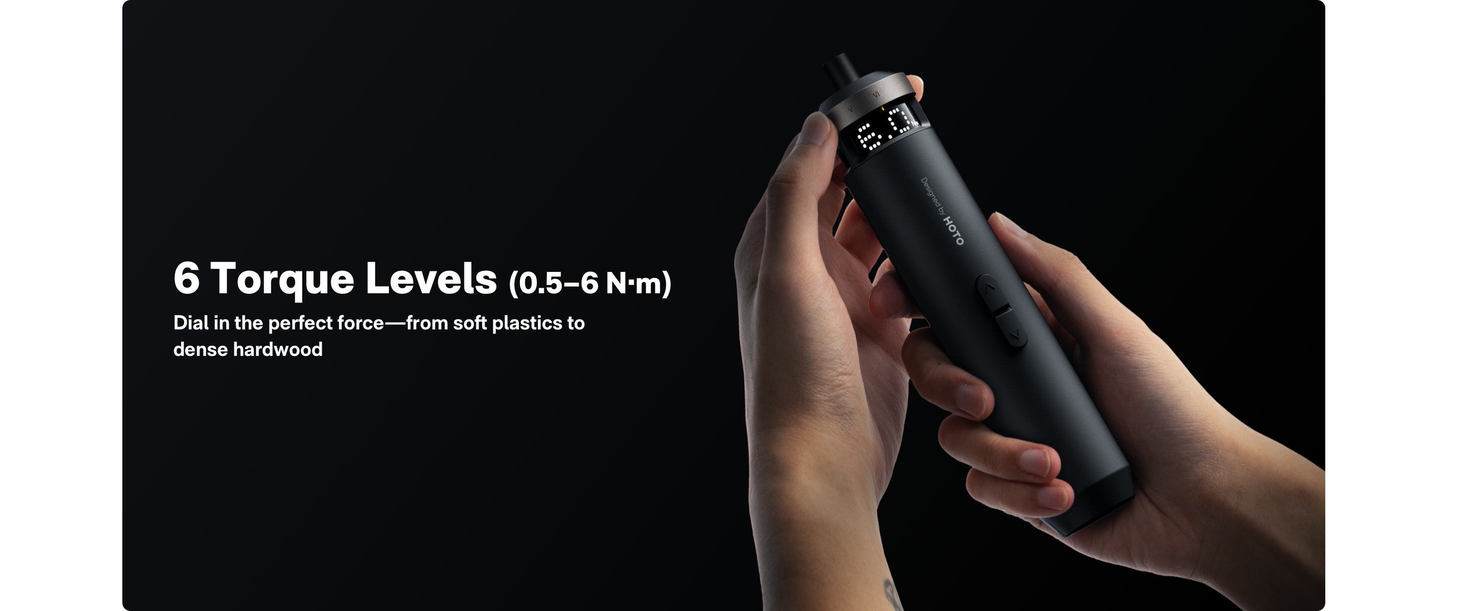 - 6 Torque Settings (0.5–6 N·m) (4.5 lb·in): Dial in the perfect force, from soft plastics to dense hardwood.