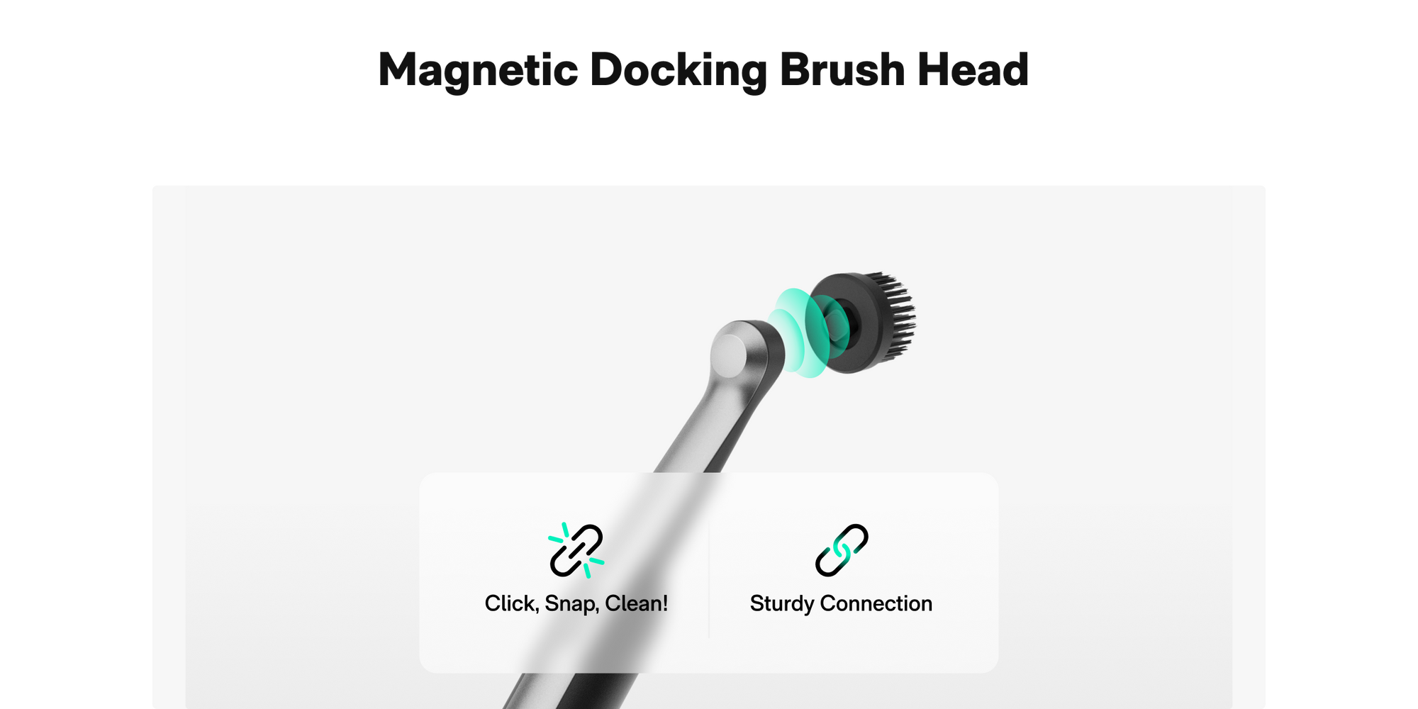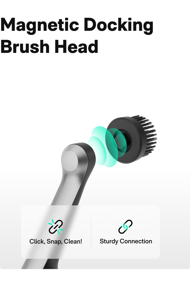 - 12 Magnetic Brush Heads Included: Comes with 12 durable magnetic brush heads engineered for tough stains and tight corners—enhanced elasticity and wear resistance for extended use.