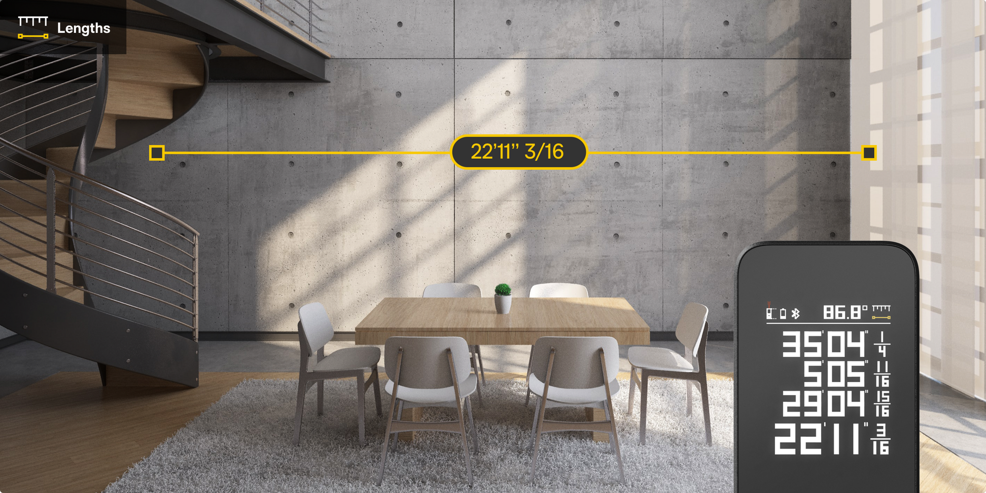 - Versatile Units: Supports feet, inches, and meters.