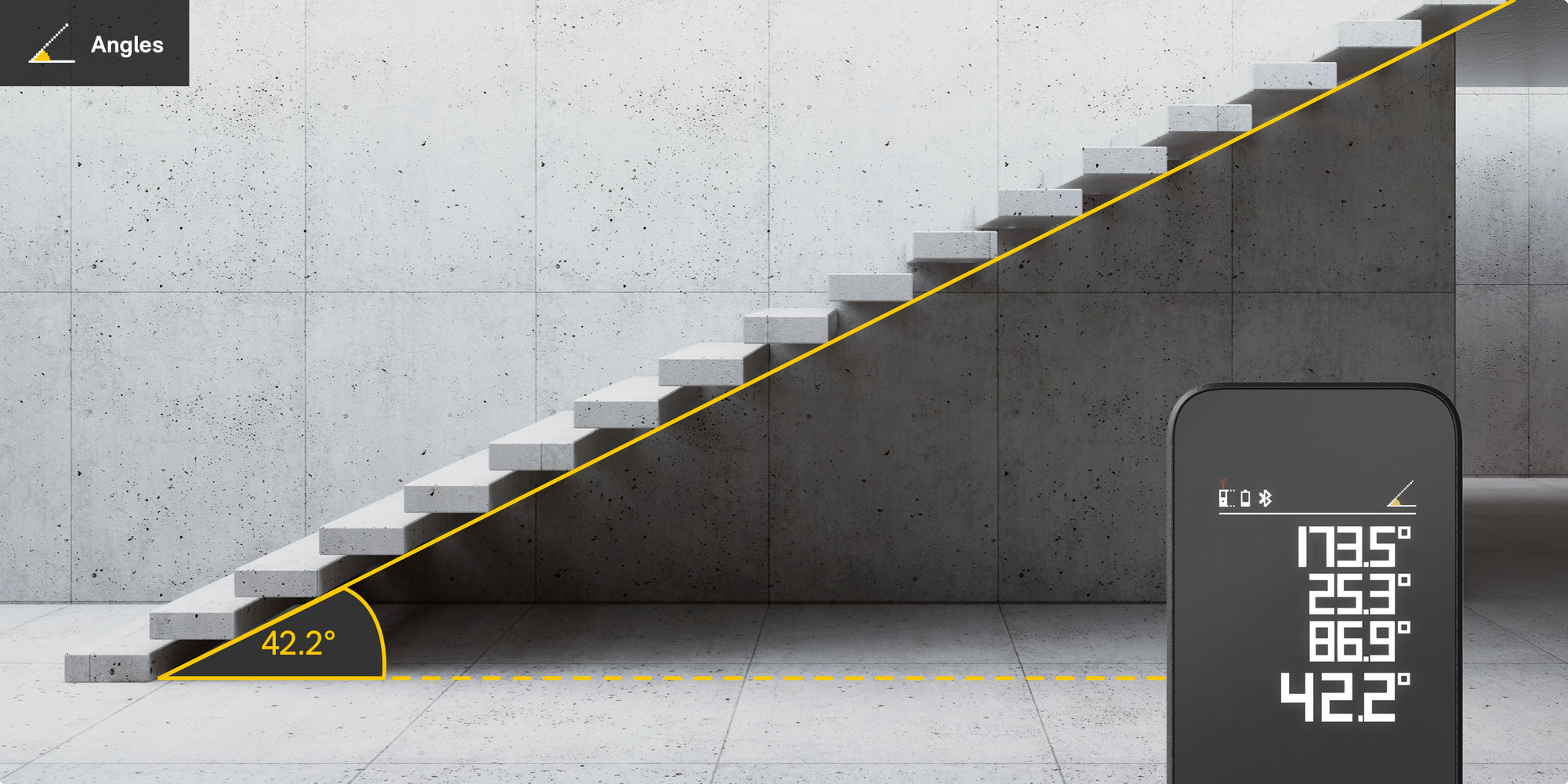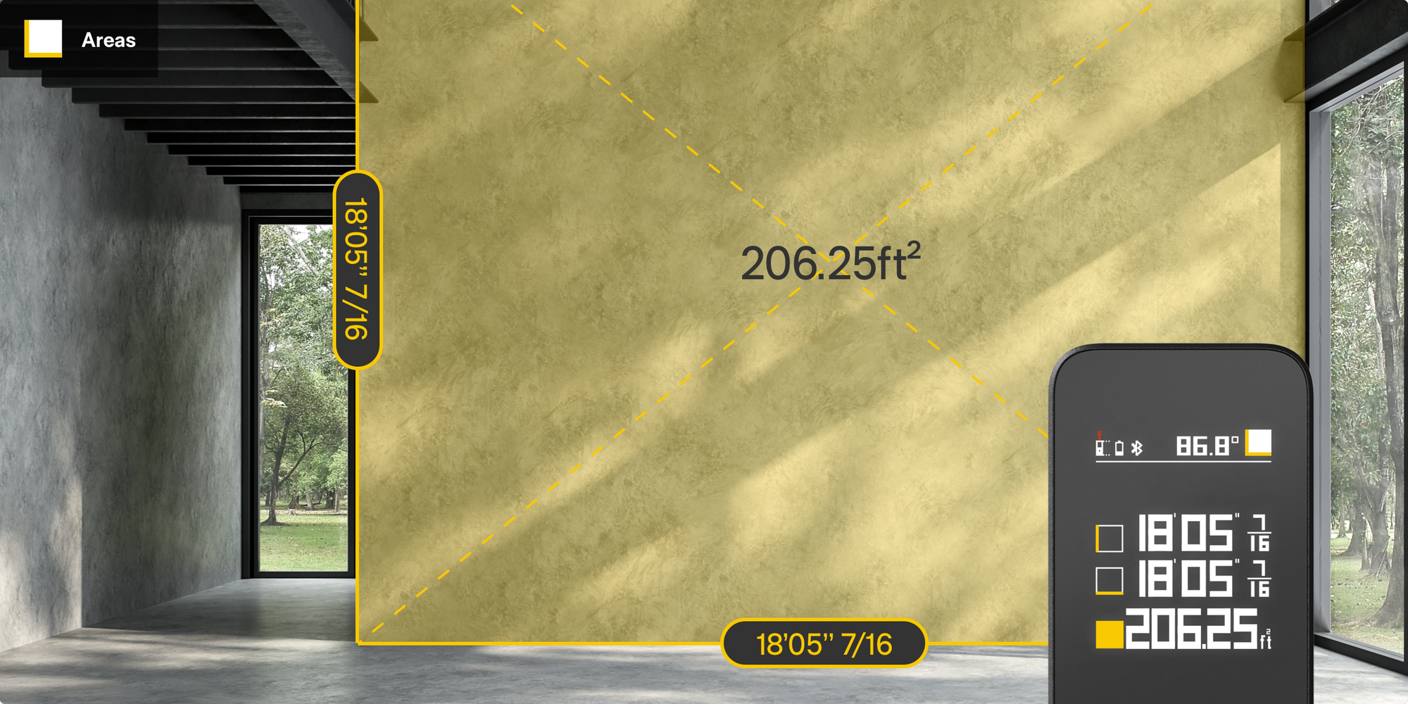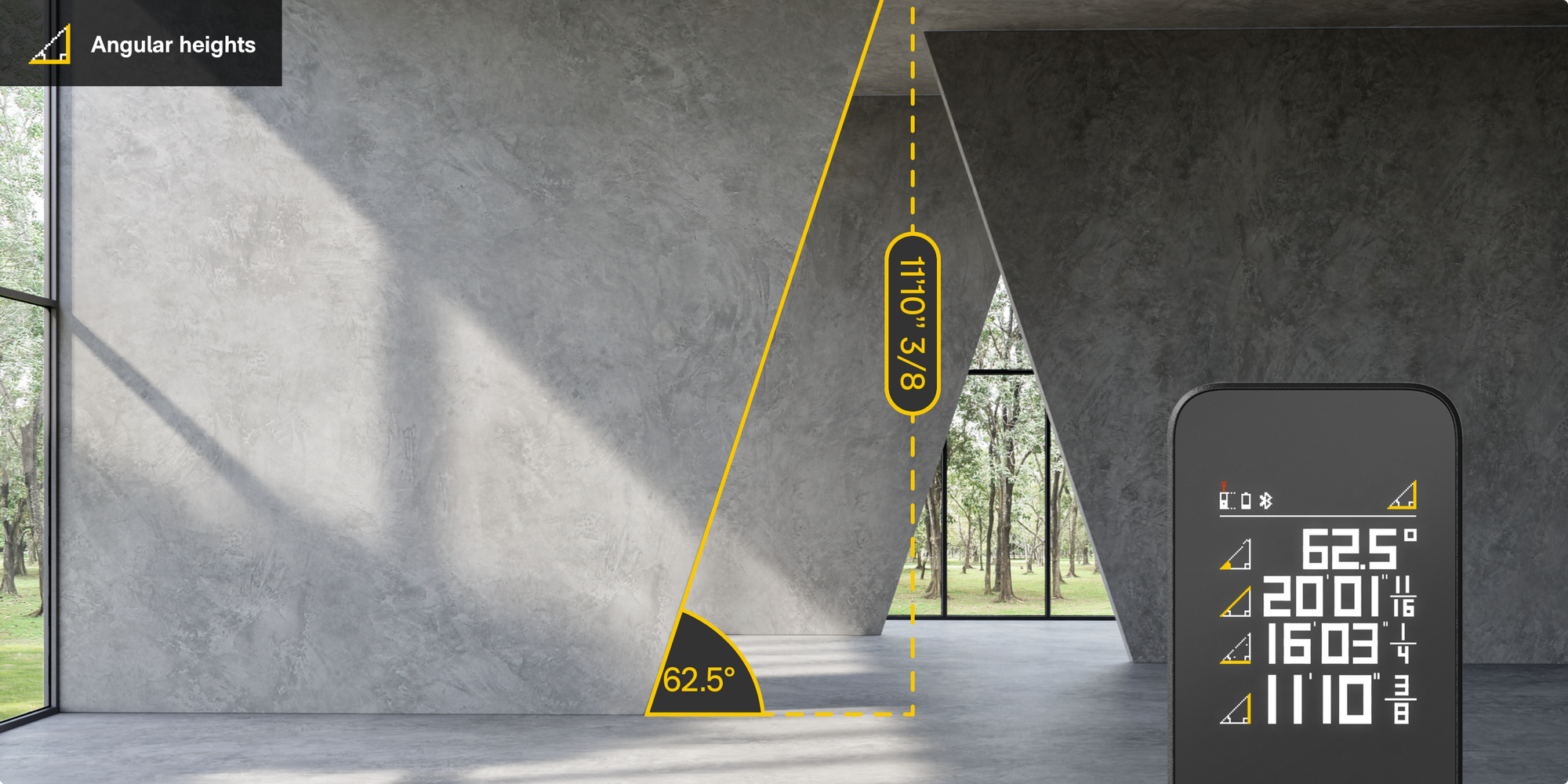 - 5 Measurement Modes: Measure distance, angle, height, area, and use the virtual ruler.
