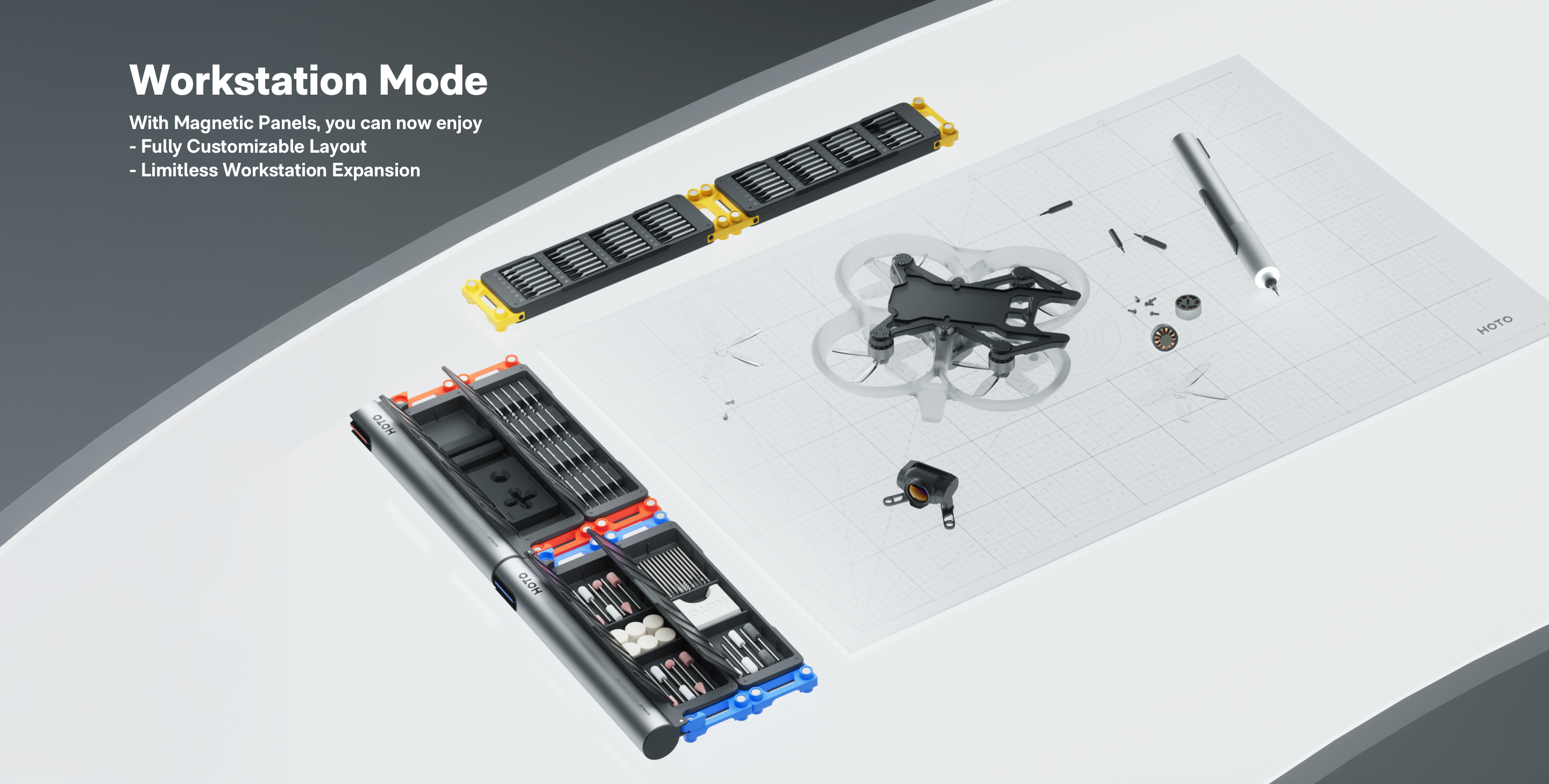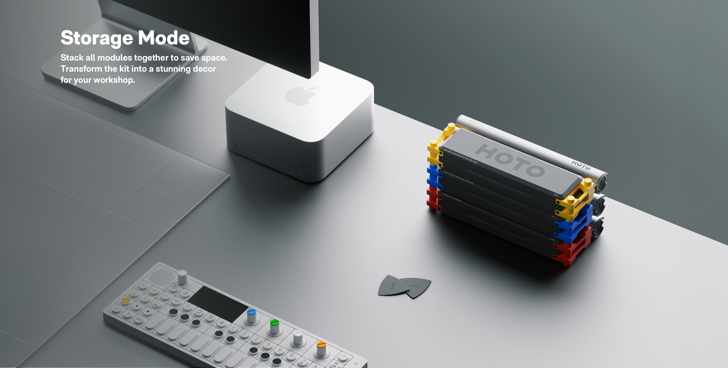 The modules will be open-source for 3D printing, so you can build custom configurations that perfectly match your workflow.