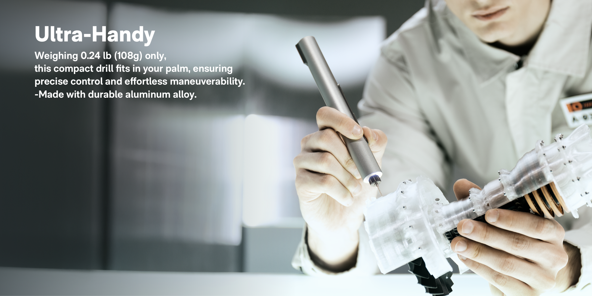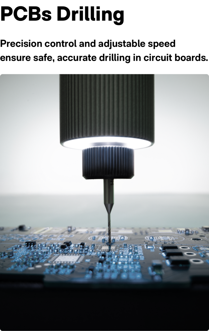 - Ultra-Handy: With a weight of just 0.24 lb (108g) and a compact size, this drill comfortably fits in your palm, ensuring precise control and effortless maneuverability.